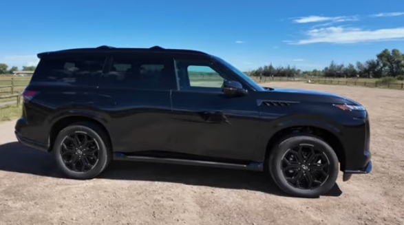 - Body Shape: Big, boxy, and intimidating; the QX80 has transitioned from a bubbly design in past generations to a more squared-off, modern silhouette.